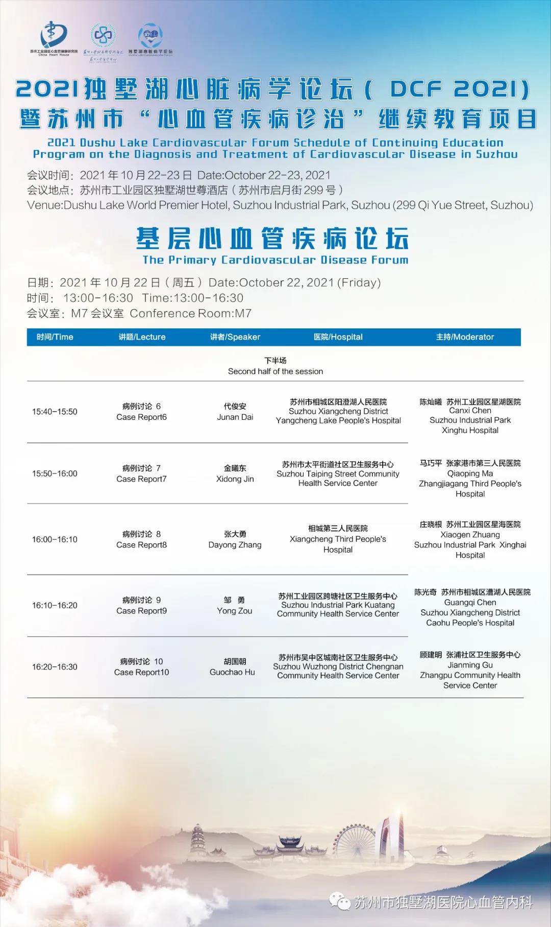 由苏州工业园区心血管健康研究院主办,苏州大学附属独墅湖医院承办的2021独墅湖心脏病学论坛(DCF 2021)暨苏州市"心血管疾病诊治"继续教育项目定于2021年10月22日~10月23日在苏州市独墅湖畔隆重召开。
