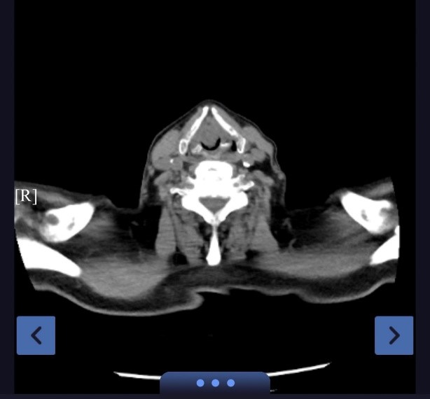 回溯病情,严老先生的求医之路充满波折。半年前,他无明显诱因出现声音嘶哑,在外院耳鼻喉科行喉镜检查未见异常,因而未引起足够重视。然而,病魔并未就此止步。1个月前,胸闷气急伴随着咳嗽咳痰症状悄然袭来,且在身体活动之后愈发严重。在外院接受住院抗感染治疗,病情却未得到有效控制。直至一周前,症状急剧恶化,夜间无法平卧,静息状态下不能耐受,短期体重下降15kg。患者及家属慕名来到苏大附四院蒋军红主任专家门诊,蒋主任凭借丰富的临床经验及精湛的医术,迅速判断出患者可能存在大气道狭窄,急诊完善颈胸CT证实了临床推断——巨大声门肿物伴大气道狭窄。