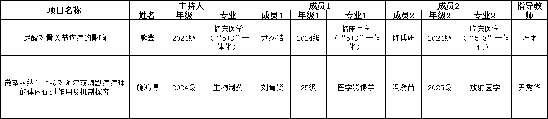 2025年“苏州医学院学生课外科研项目”立项名单公示