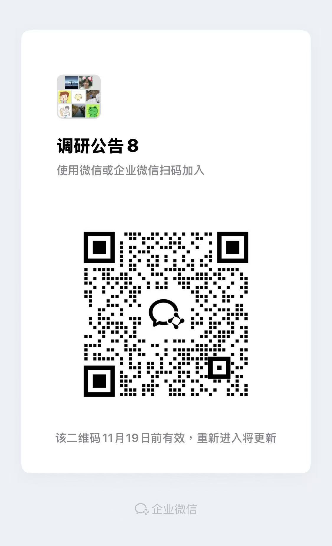 9. 各报名公司扫码加入调研公告群(群二维码见附件5),并修改备注名为报名公司名称,方便后续通知参加介绍会。