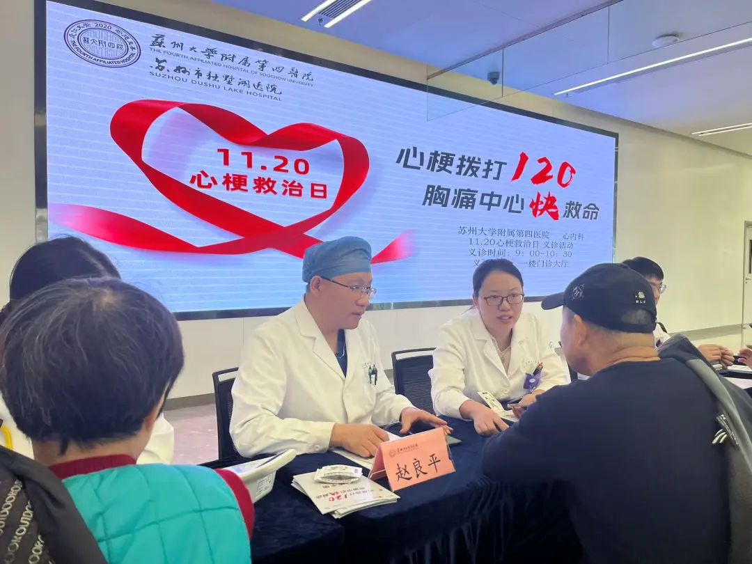 11月20日是“中国心梗救治日”,“1120”这组数字承载着心梗救治的双重生命寓意:一是“有胸痛,我要拨打120”,二是“心梗救治,争取黄金120分钟”。为提升公众对急性心肌梗死防治意识,普及规范化救治流程,苏州大学附属第四医院心内科围绕中国心梗救治日开展了一系列主题活动。