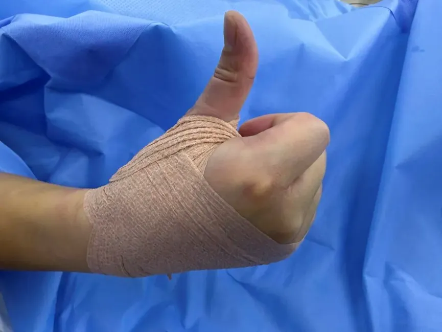 并发症更少,恢复更快速:全程微创操作,穿刺创口更小,结合超声的精准定位,进一步减少对周围组织的损伤,患者术后恢复更快。远端桡动脉位于腕部偏外侧,位置表浅且周围软组织少,术后压迫所需压力小、时间短,有效避免了常规穿刺后因强压迫、长时间制动导致的疼痛、水泡、皮肤破损等问题。患者术后手部可自由活动,大幅提升就医体验,住院时间也相应缩短,符合快速康复的临床理念。