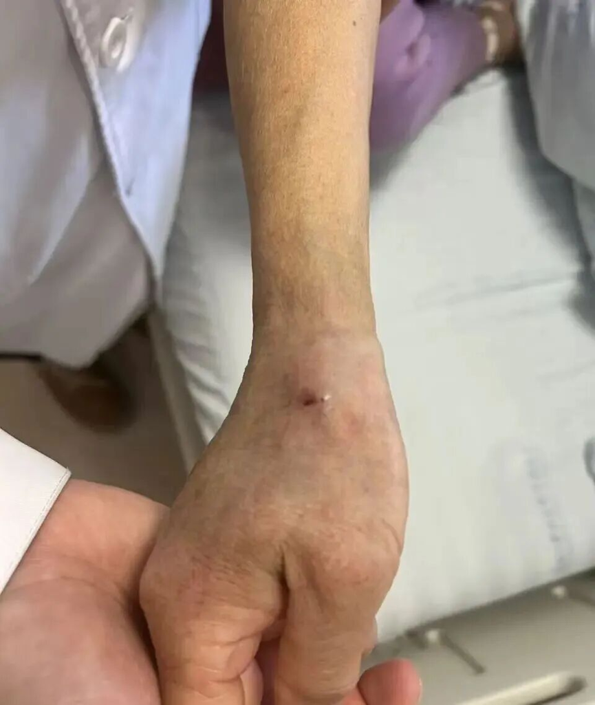 王先生被冠心病困扰多年,冠脉多支病变让他反复出现胸闷、胸痛症状,此前已接受多次 PCI 手术治疗。但常规桡动脉穿刺术后,穿刺部位的长时间压迫不仅让他承受剧烈疼痛感,还多次出现局部皮肤水泡、红肿的情况,术后手臂制动也严重影响生活,这让他对再次手术充满顾虑。